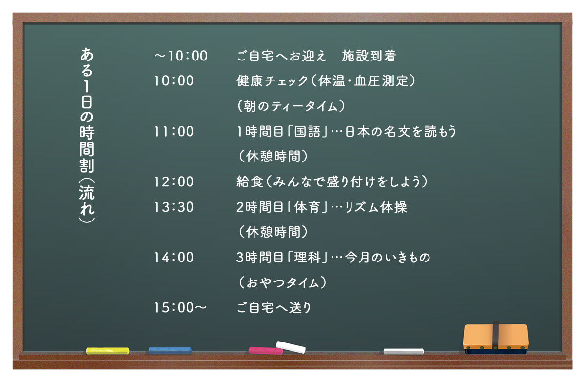 【サービス提供時間】:午前10時~午後3時までの5時間